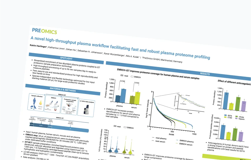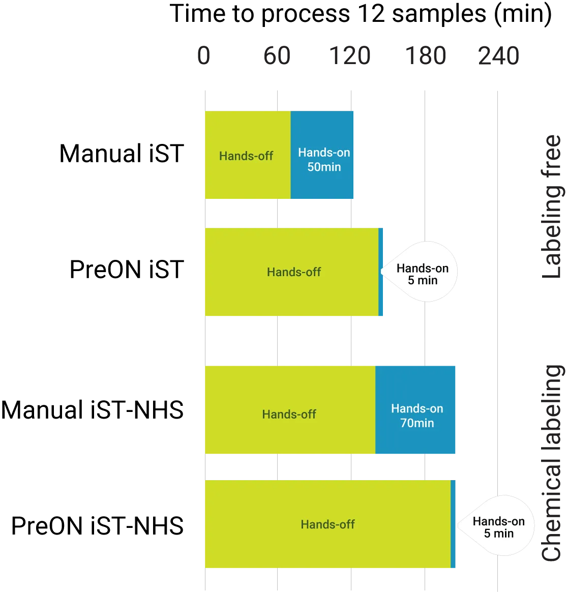 Developing robust workflows via automation is the solution to improve reproducibility, process reliability and increase throughput of LC-MS sample preparation. PreOmics®’ proprietary PreON® and APP96™ instruments enable turn-key automation of proteomics sample processing at the push of a button for many complex sample types while decreasing hands-on time to a few minutes. Furthermore, protocols and support for automating iST workflows on all major third-party automation platforms are readily available.