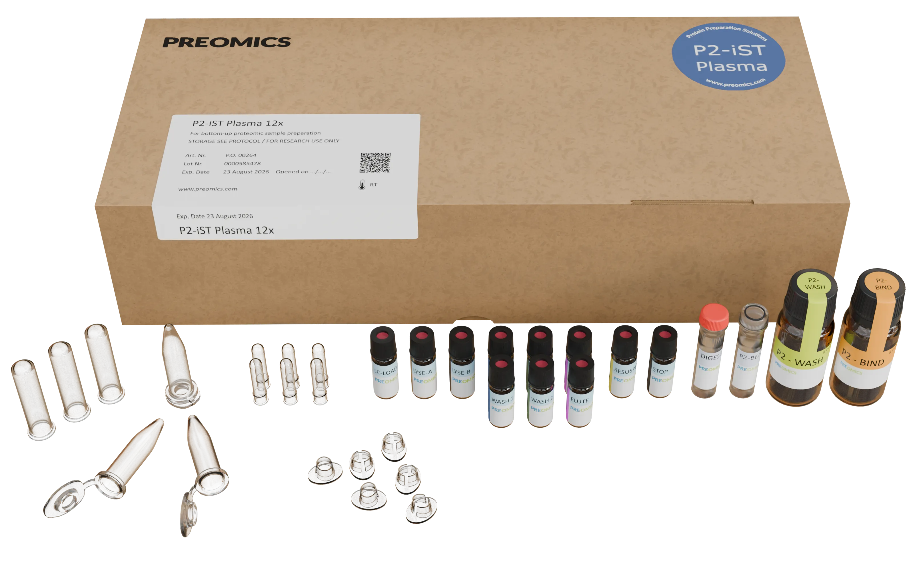 The integration of Biognosys’ P2 single particle technology with PreOmics’ proven iST workflow introduces a next-generation, particle-based enrichment solution that improves access to low-abundance proteins in human EDTA plasma. The P2–iST Plasma workflow provides high-quality, LC-MS–ready peptides in just a few hours with exceptional reproducibility, analytical depth, and confidence. Combining precision, flexibility, and scalability, this optimized workflow empowers researchers to achieve consistent, high-quality results even from the most challenging plasma samples.